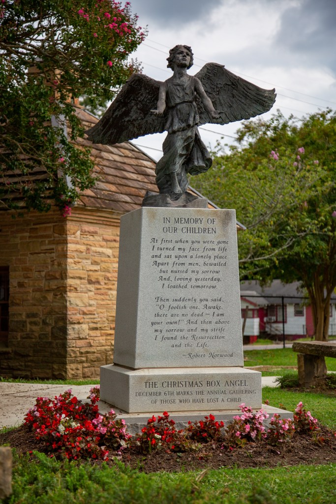 The Christmas Box Angel Statue is dedicated to all parents who have lost a child.
